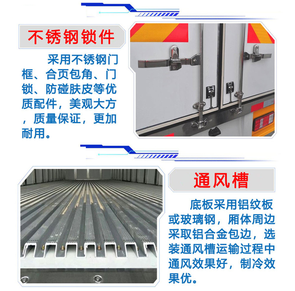 【厢体标配】内外2.0玻璃钢,中间保温板,厢体8CM厚,底板铝花纹板。
